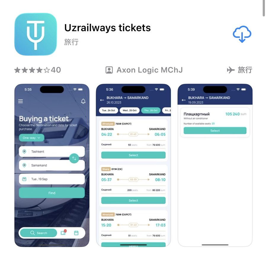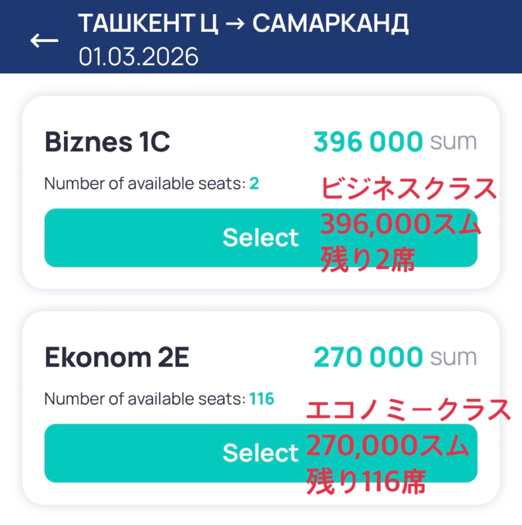公式アプリ(Uzbekistan Railways) から予約できます。