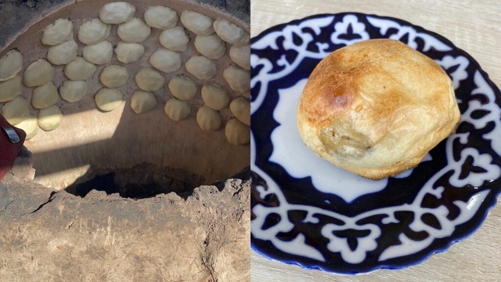 インドのサモサは 揚げる のが主流ですが、ウズベキスタンのサモサは タンドール(窯)で焼く のが特徴です。実際に窯で作っているところを見学させてもらいました!