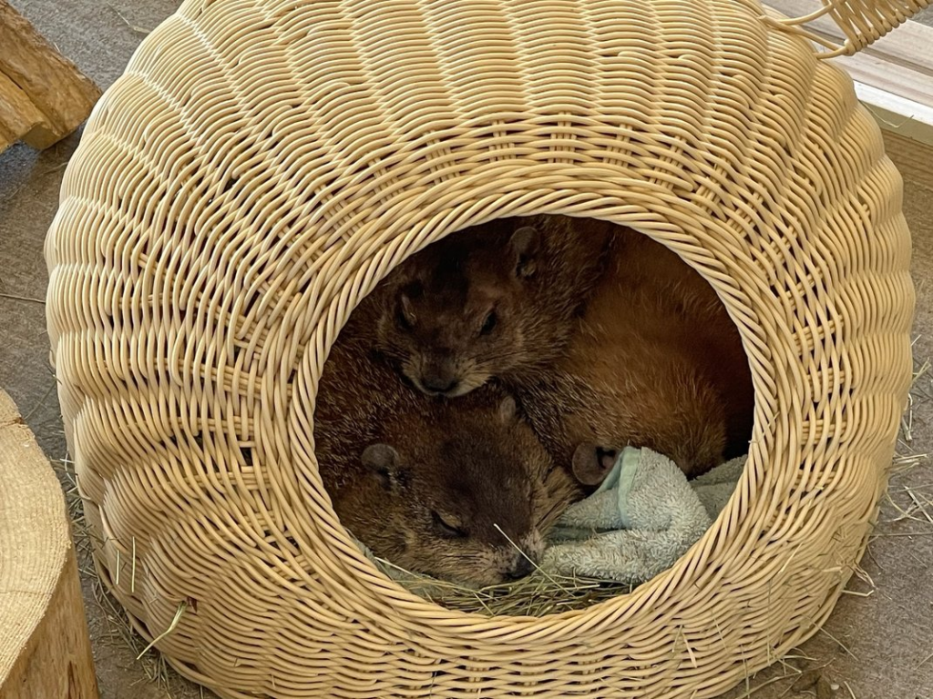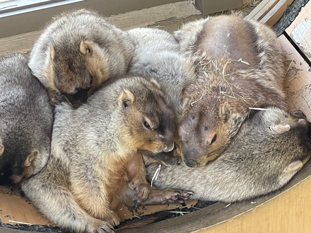 ぎゅっと寄り添って眠るマーモットたち。